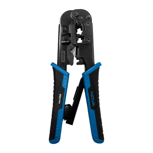 انبر سوکتزن تلفن و شبکه نوا مدل 8069 یک ابزار کاربردی و حرفهای برای نصب و مونتاژ سوکتهای کابل تلفن و شبکه است که انتخابی ایدهآل برای تکنسینهای برق، کارشناسان شبکه، نصابان سیستمهای ارتباطی و کاربران فنی بهشمار میآید. این ابزار چندکاره امکان پرس سوکتهای RJ45، RJ11 و RJ12 را فراهم میکند و انجام همزمان عملیات پرس، لختکردن و برش کابل را با سرعت و دقت بالا ممکن میسازد.